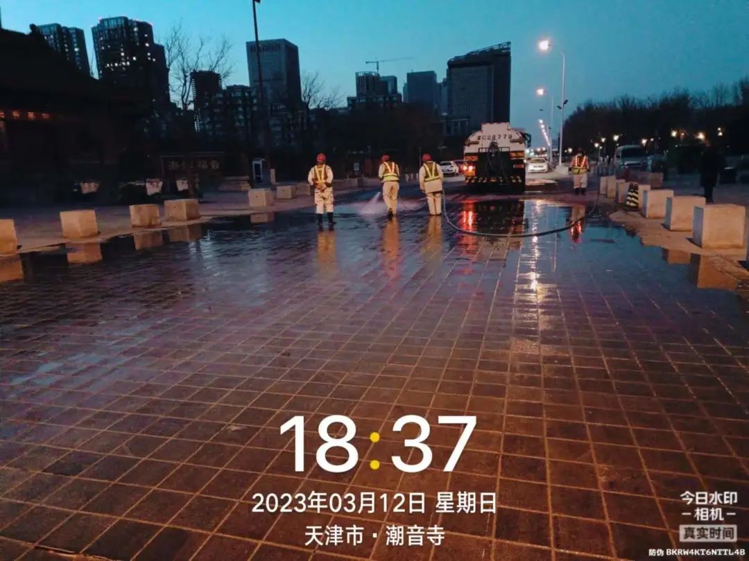 配合经开区做好现场环境卫生、垃圾清运等工作。为方便居民参加庙会活动,泰达环卫公司对临时停车场进行全面平整,在活动现场设置流动卫生间、流动垃圾箱,同时派出扫保工人对活动现场进行不间断清扫,连夜转运垃圾。活动结束后,立即对活动现场路面上残留的香灰进行清洗。