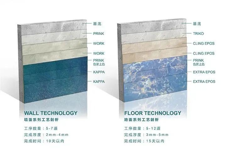 艺术树脂是一种一体无接缝的地面和墙面材料,它最大特点是可以附着在任何基底,做出任何你想要的肌理效果,还能运用各种颜色绘制各种图案。