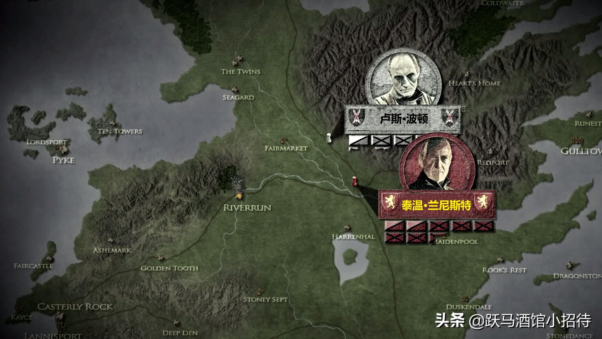 《权游》电视剧主要为我们展现了权力斗争的利益交换、尔虞我诈,却很少在战术层面向我们展示一些精彩的战役。当然,一方面有预算的限制,另一方面,在有限的时间里展现冷兵器时代复杂的战术运用的确比较困难。那么今天我们就发挥一下平面媒体的优势,为大家用图文还原一下五王战争中的经典战役——呓语森林之战(Battle of the Whispering Wood)。