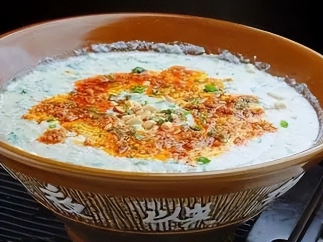 与南方的咸豆腐脑不同,襄阳的豆腐脑是甜口的。临上桌时,白花花的一大碗豆浆,搭配上红艳艳的臊子肉酱,鲜香扑鼻。小心翼翼舀起一勺送入口中,滑嫩柔顺的口感瞬间包裹味蕾,与臊子酱鲜美的滋味交织碰撞,回味无穷。此外再加上佐料如香菜、辣酱等,令这道看似平凡的小吃焕发出无与伦比的风味。