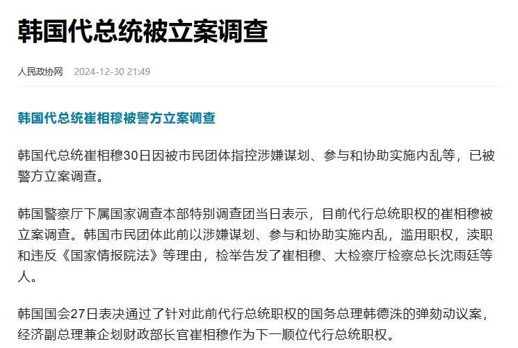 尹锡悦最后的结局和前面的韩国总统的结局差不多,更让人没想到的是,韩国代总统都似乎没有逃过这个“魔咒”,使得韩国的政治始终充满了不确定性。