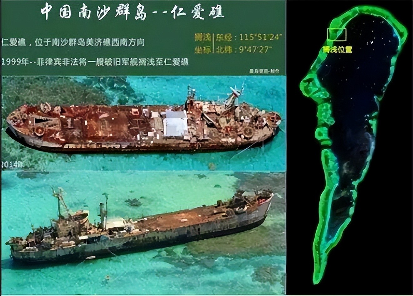 其实搁浅占礁的办法,对于我国来说,并不是一件新鲜事,在1999年,我国和美国关系紧张之时,菲律宾就通过搁浅占礁的办法,占据了了我国的仁爱礁。