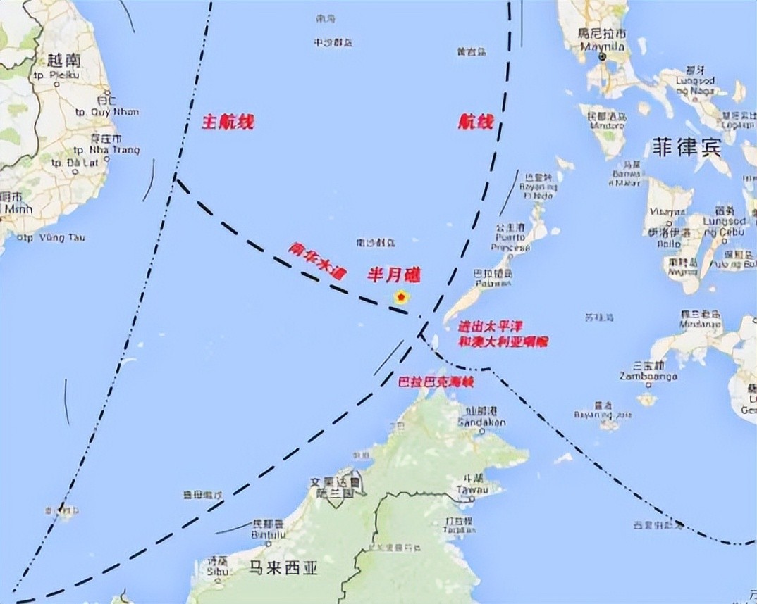 半月礁位于南华水道,南海航线,以及南海进出太平洋、澳大利亚地区的关键航道内,属于典型的四通八达之所。