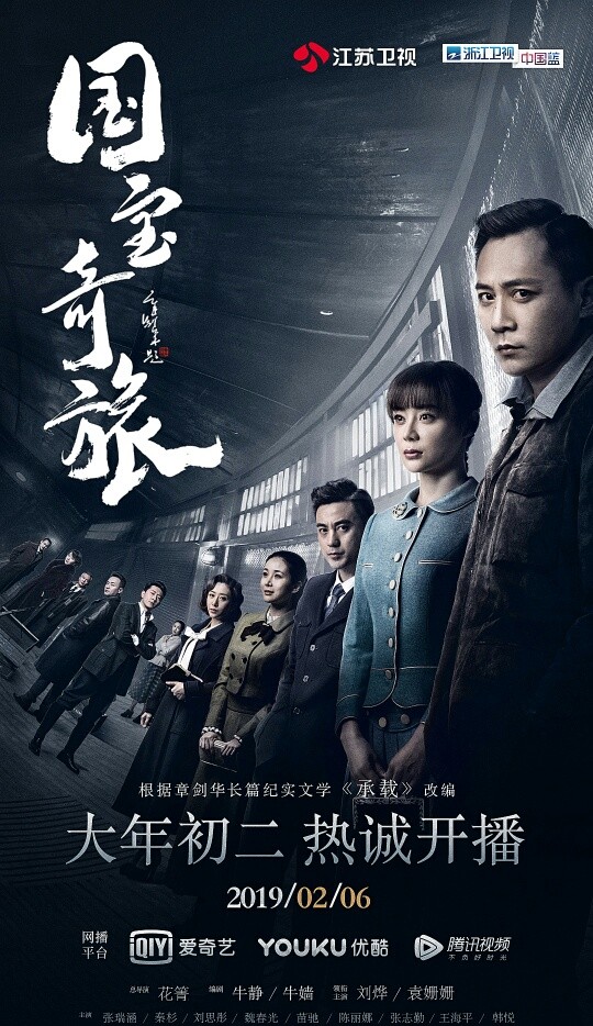 《国宝奇旅》是由霍尔果斯华视友邦影视传媒有限公司、幸福蓝海影视文化集团股份有限公司、霍尔果斯捷成华视网聚文化传媒有限公司出品的抗战悬疑剧,由花箐任总导演,牛静、牛嫱编剧,刘烨、袁姗姗、张瑞涵、秦杉、刘思彤等主演。该剧根据章剑华的长篇纪实文学《故宫三部曲》之二《承载》改编,讲述讲述“九一八”事变之后,爱国军官任弘毅与故宫博物院工作人员周若思等组成文物南迁小组,踏上危机四伏的惊险旅程,用生命和智慧保住故宫文物的安全和完整。该剧于2019年2月6日在江苏卫视、浙江卫视首播,并在爱奇艺、优酷视频、腾讯视频同步播出。