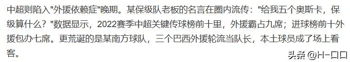 2010-2020年的中超“金元时代”,俱乐部豪掷千万美金引进孔卡、奥斯卡、保利尼奥等巨星,却未能同步提升本土球员水平。外援垄断核心位置,导致国内球员沦为配角。