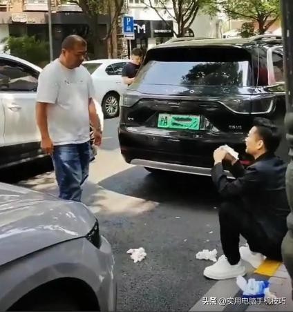 而此时女子的疑似出轨对象,则从车上下来,坐在马路边上,气定神闲的看着女子和丈夫对峙,看上去十分淡定,好像事不关己一样。