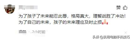 也有网友表示,为了孩子了未来能忍此辱,格局真大,理智战胜了冲动!为了自己的未来,孩子的未来理应及时止损。