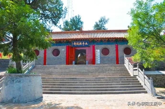 出天齐庙左转,沿盘山曲径东北行,至半山腰便至太平兴国寺。始建于北宋太平兴国年间(976一984年)。主要建筑有释迦牟尼大殿、朝阳洞和观音洞。