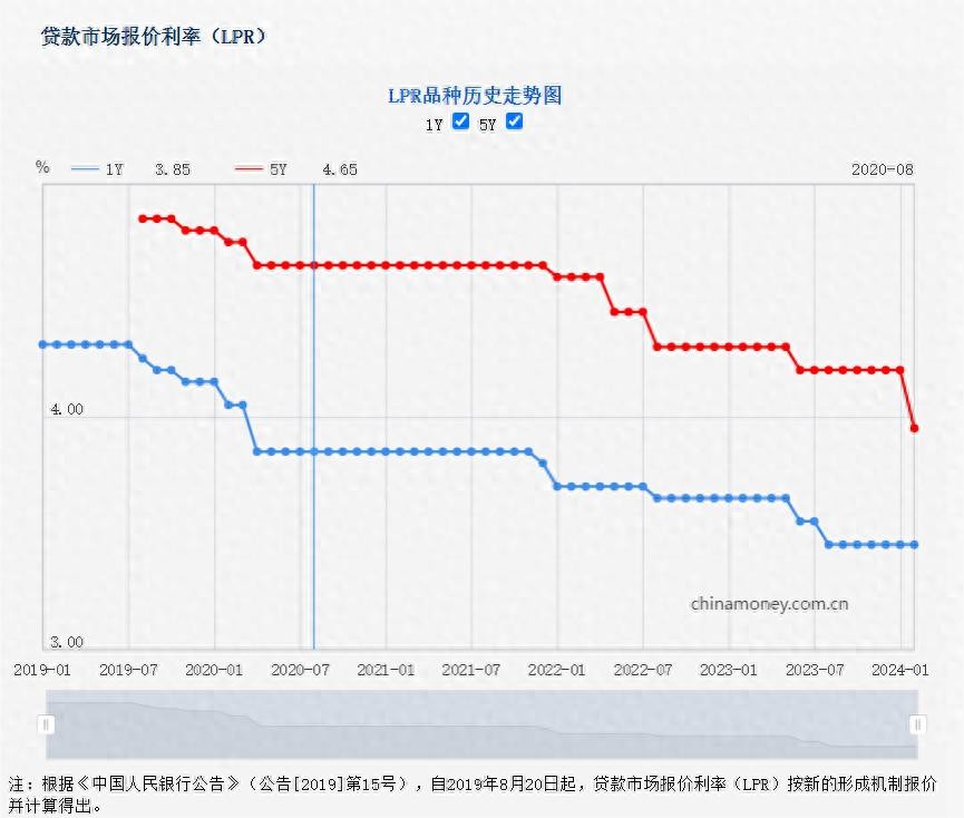2024年2月,央行公布了最新的LPR(贷款市场报价利率),其中1年期LPR为3.45%,5年期以上LPR为3.95%。