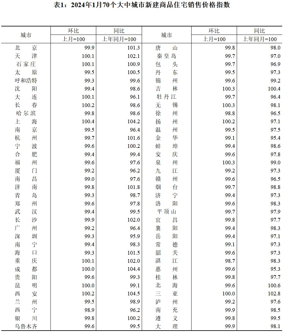 国家统计局2月23日发布的《70个大中城市商品住宅销售价格变动情况》显示,70城中商品住宅销售价格环比下降城市个数减少,商品住宅销售价格环比降幅整体收窄、同比整体延续降势。