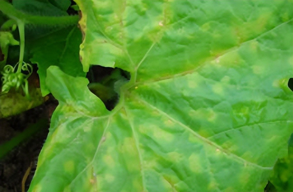 黄瓜、西瓜等葫芦科植物易患。叶片发病初期为水渍状小斑点,后扩大成多角形病斑,颜色由淡褐变黄褐,病斑背面有白色菌脓溢出,干燥时开裂穿孔。病原菌在种子、病残体上,经雨水、昆虫传播,从气孔等自然孔口侵入,高温高湿、种植过密、通风透光差易发病。