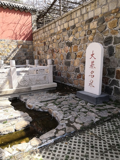谷内林丰木繁,古木参天,芳草萋萋,山花野果,清香流溢,因无村居阡陌,纤尘不染,清静安谧。昔日谷底清泉四涌,溪流纵横,潺潺流水经年不断。过去掖县的八大景之一的“大基名泉”就在谷底东坡原无生殿下的百花丛中。冷冷清泉顺着石罅汩汩涌出,不断滴入小石池中,由池中又缓缓漫出,其水清凉醇厚,甘美爽口,水质极佳,因而誉之为“大基名泉”。