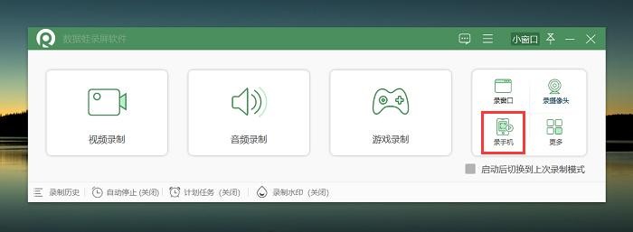 第1步:打开浏览器搜索并下载数据蛙录屏软件,下载安装完成后,双击打开它,您将看到一个简洁的用户界面,录制iPad我们选择“录手机”模式。