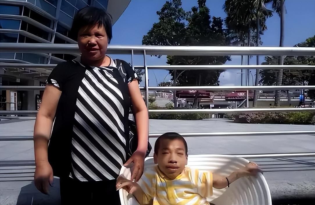 李创利的母亲用婴儿车推着他