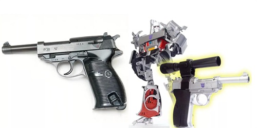 相比较而言,霸天虎首领威震天的伪装是一支瓦尔特(Walther)P38手枪却是毋庸置疑的!