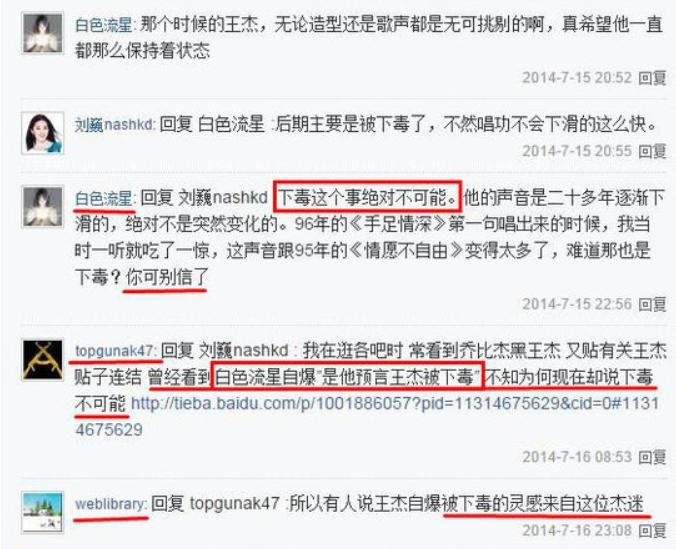 其中有个人就回复他,说自己预言王杰是被下毒了 。