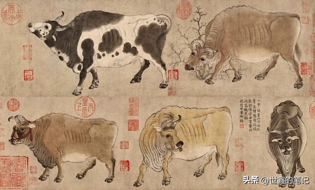 《五牛图》是唐代宰相韩滉所作,以极高明的手法刻画了五头形态各异的耕牛,赵孟頫称赞为“神气磊落,稀世名笔”,有很大的艺术价值。