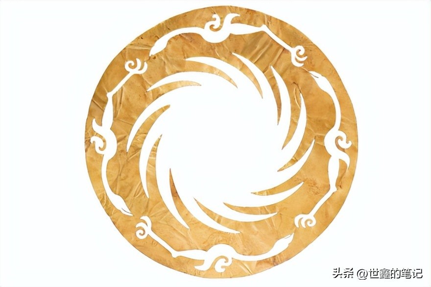 太阳神鸟金饰类似同心圆,外围有四只引颈展翅、似飞没飞的神鸟,内圈延展出十二道分叉,象征光芒四射的太阳。