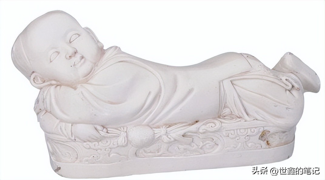 定窑孩儿枕是九大国宝中的瓷器代表,是五大名窑“汝官哥钧定”之一的定窑烧制而成,整体是一个小孩子模样的瓷枕,塑制精美。
