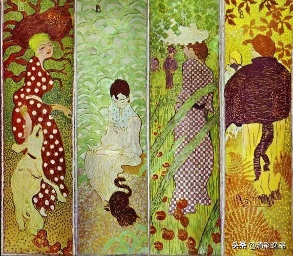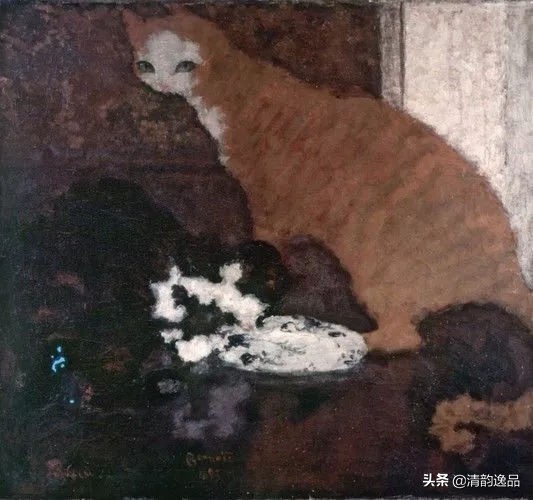 尽管都是纳比派成员,但成员与成员之间的感受力却也存在着相当的分歧。在纳比派中还存在着诸如高尚理论家以及像博纳尔一样的日本纳比派,博纳尔之所以被称为日本纳比派,也是因为他喜好日本浮世绘的关系。在博纳尔的画面中也无数次出现了猫,而葛饰北斋以及歌川国芳两位浮世绘大师也无比爱猫,简单几个线条,勾勒出这种神秘的古老生物,博纳尔作品中的日本美术痕迹比比皆是。