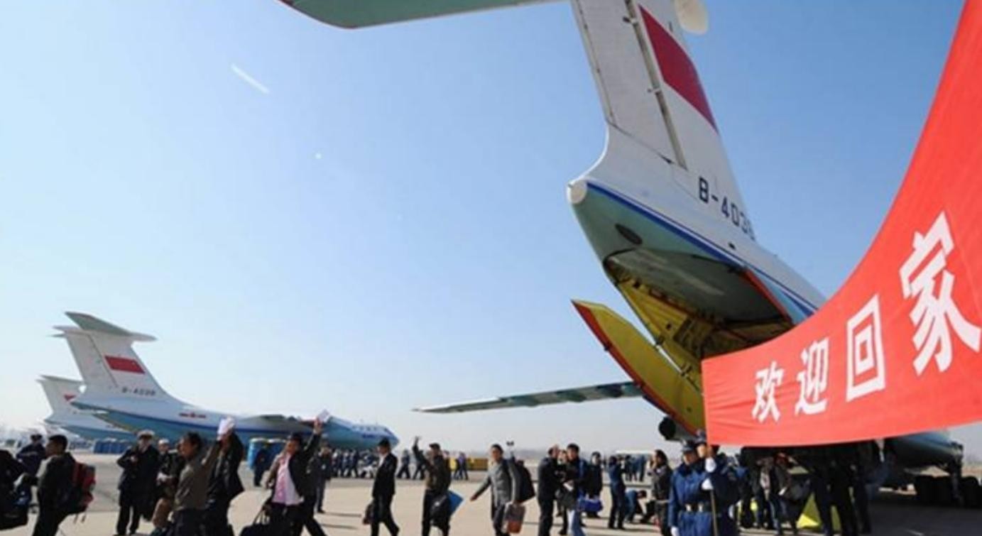 最终,经过长达5个昼夜的不懈奋战,多达1299名中国公民分别乘坐九架政府包机顺利的撤到了新疆乌鲁木齐。