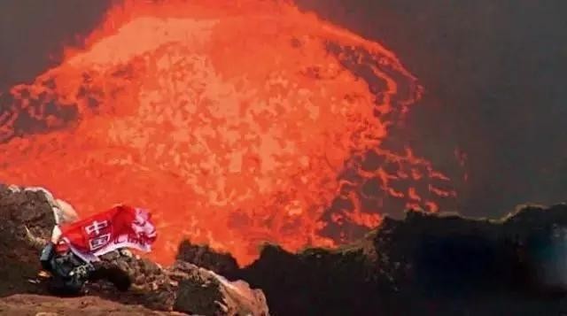 在得到妻子的支持下,张昕宇顺着绳索下降了5个小时,命悬一线。他终于在距离岩浆仅仅275米的地方,举起了印有“中国”两字的旗子。