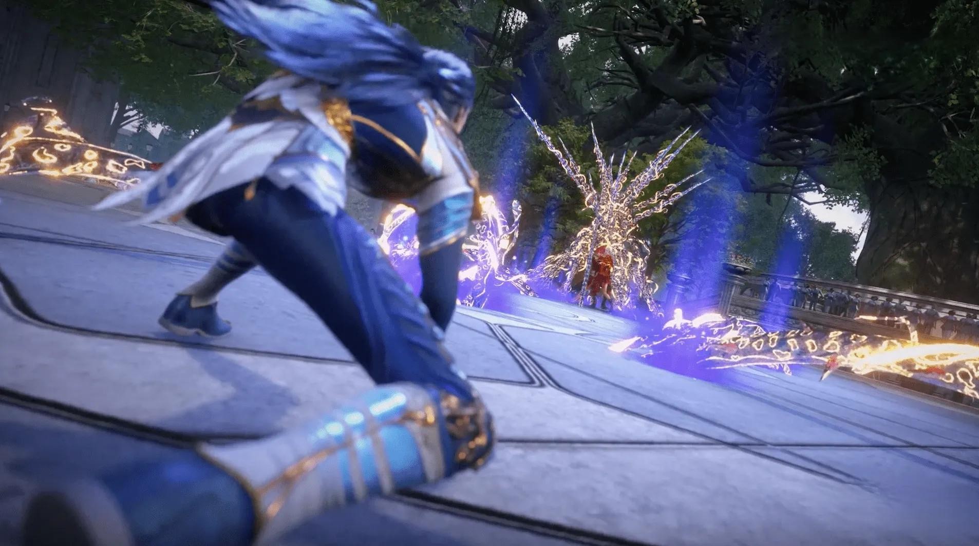(2)蓝银青龙缠之魂(召唤两条龙形虚影相互旋转攻击,打击一条线上的敌人。)