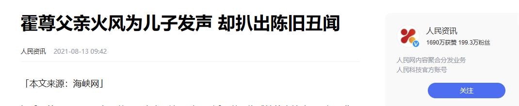 人民咨询:(霍尊父亲火风为儿子发声 却扒出陈旧丑闻2021.08.13)