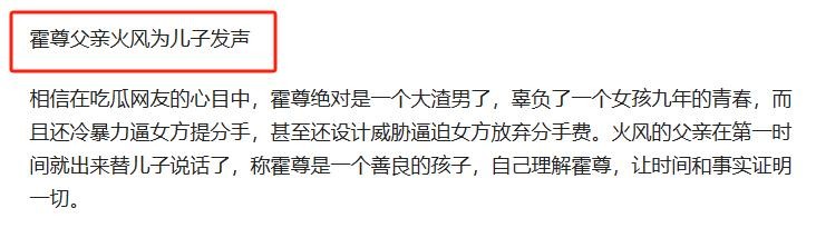说不定霍尊有今天,就是遗传了“渣男”基因。