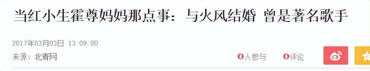北青网:(当红小生霍尊妈妈那点事:与火风结婚 曾是著名歌手2017.03.03)