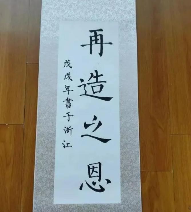 痊愈后的第一件事,郑桦便写了一幅字送给捐献骨髓的女子,上面写着“再造之恩”。