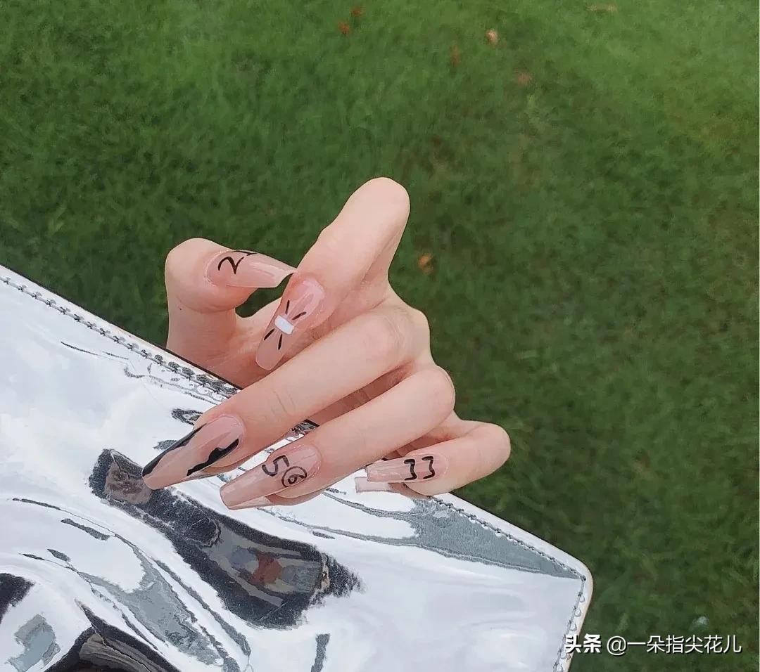 第九款:果冻透色打底,搭配数字线条。