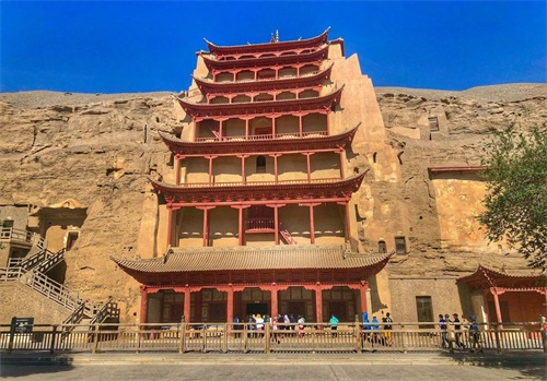 莫高窟位于甘肃省敦煌市,河西走廊的尽头。石刻造像前后延续了近一千年,这在我国石窟艺术史上是绝无仅有的。其洞窟、彩塑、壁画之多,艺术价值之高,在世界上都属罕见。并由此衍生出了一门学科“敦煌学”。莫高窟与大同云冈石窟,洛阳龙门石窟,天水麦积山石窟并称为“四大石窟”。早在1987年,就被列入了世界文化遗产名录。
