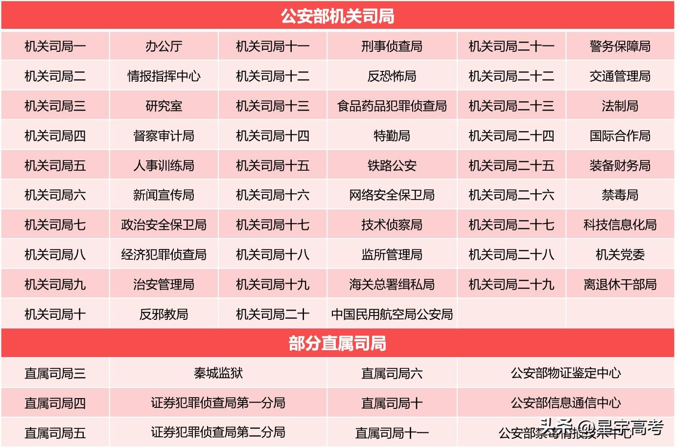 上面这张表就是2025年公安部机关岗位,大家有没有发现“用人司局”都只有“代称”,那这些局具体都是干什么的呢?