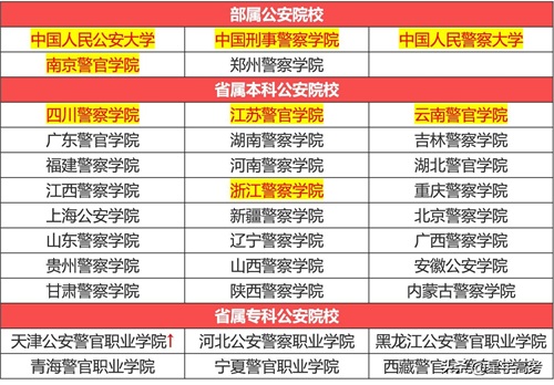 目前,我国警校中可以参加公安联考的35所公安院校:5所公安部直属院校均为本科;30所省属院校,其中本科24所,专科6所。