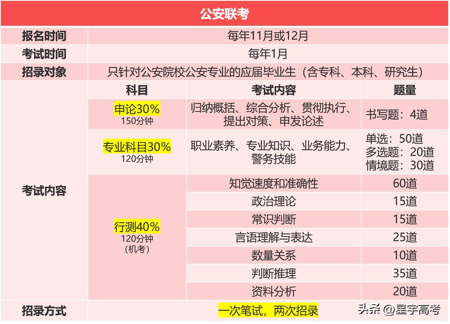 公安联考笔试科目与比例
