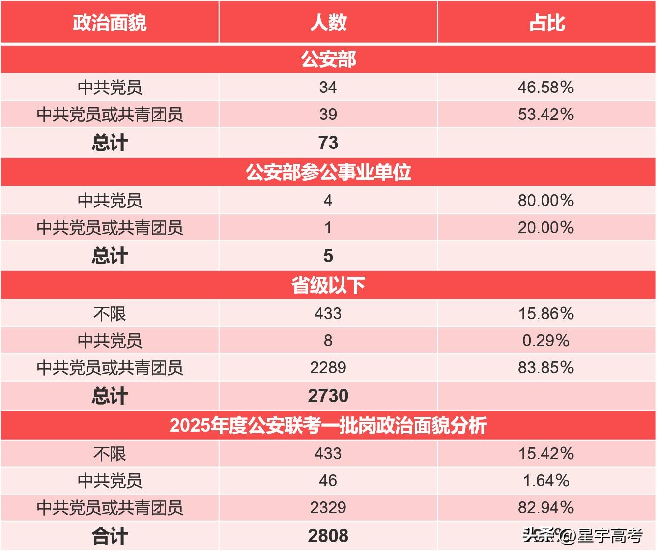 政治面貌要求:从2025年公安联考一批岗的政治面貌要求来看,完全不限的只有433人,党员和团员的身份还是非常吃香的,所以入党就要从高中开始着手准备,现在高中、大学入党,需经团员推优,那么入团就成了非常重要的环节。