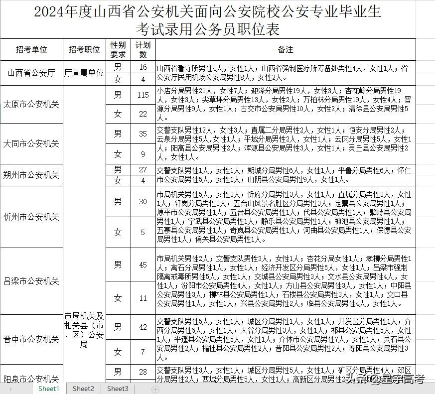 第二批次就是拿着你的联考成绩,回本省和省内的公安院校同学一起参与竞争,省内职位又分省厅的和地市的,大多数省厅和地市职位都是按照联考成绩从高到低进行选岗。各省政策不同具体岗位也不同,下面是2024年山西省的第二批次岗位表。
