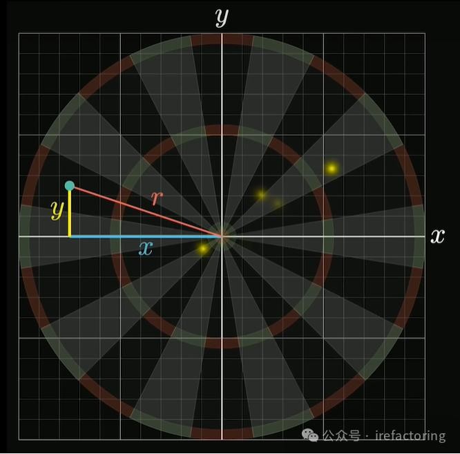 又因为条件 我们知道可以通过旋转对称性,可知 轴和 轴方向上概率密度函数相同,所以 。同时落点 距离原点的距离为 ,如下图 10 所示: