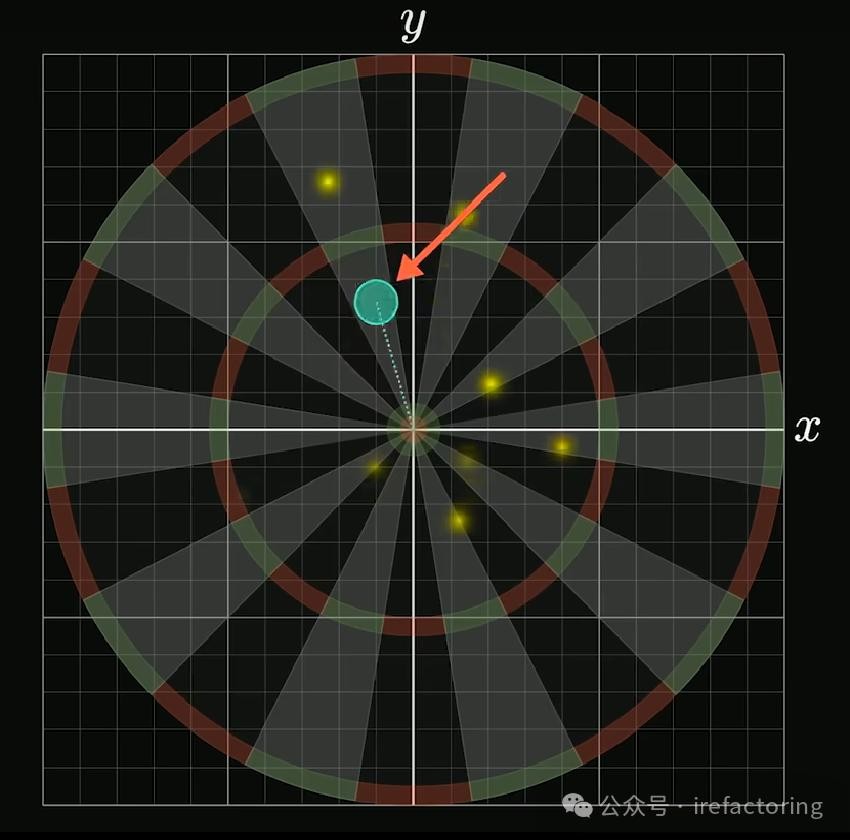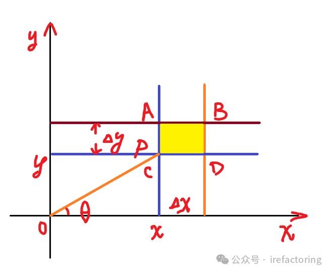 设落点 的概率密度函数为 , 轴方向上概率密度函数为 ,则 轴方向上的概率密度函数为 ,那么考虑如下图 12 所示的一个充分小的黄色区域: