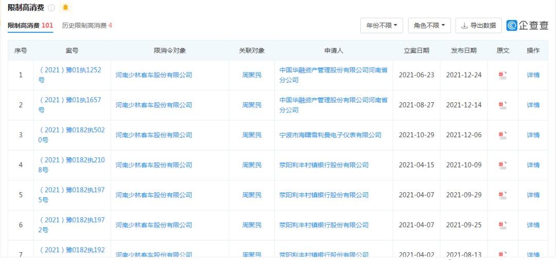 数据显示,2017年至今,先后有洛阳银行、荥阳农商行、平顶山银行、郑州银行等十多家金融机构因债务偿还问题将少林客车公司告上法庭;金湖县春晨客车门系统、张家港市丰乐汽车设备、上海大郡动力控制技术、安阳大通型钢等数十家上下游合作商也纷纷拿出供货协议加入诉讼。