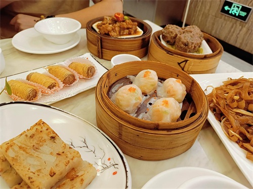 点都德的虾饺堪称一绝,每一只虾饺都饱满圆润,里面包裹着鲜嫩的虾仁,一口咬下去,鲜美的汁水在口中散开,让人陶醉。烧卖也是必点之一,外皮薄如纸,里面的肉馅鲜嫩多汁,搭配上顶部的蟹籽,口感更加丰富。除了这些,还有各种精致的糕点和肠粉,每一款都能让你感受到广州早茶的独特魅力。人均消费在80元左右,虽然价格不算便宜,但能品尝到如此正宗的早茶,也是十分值得的。