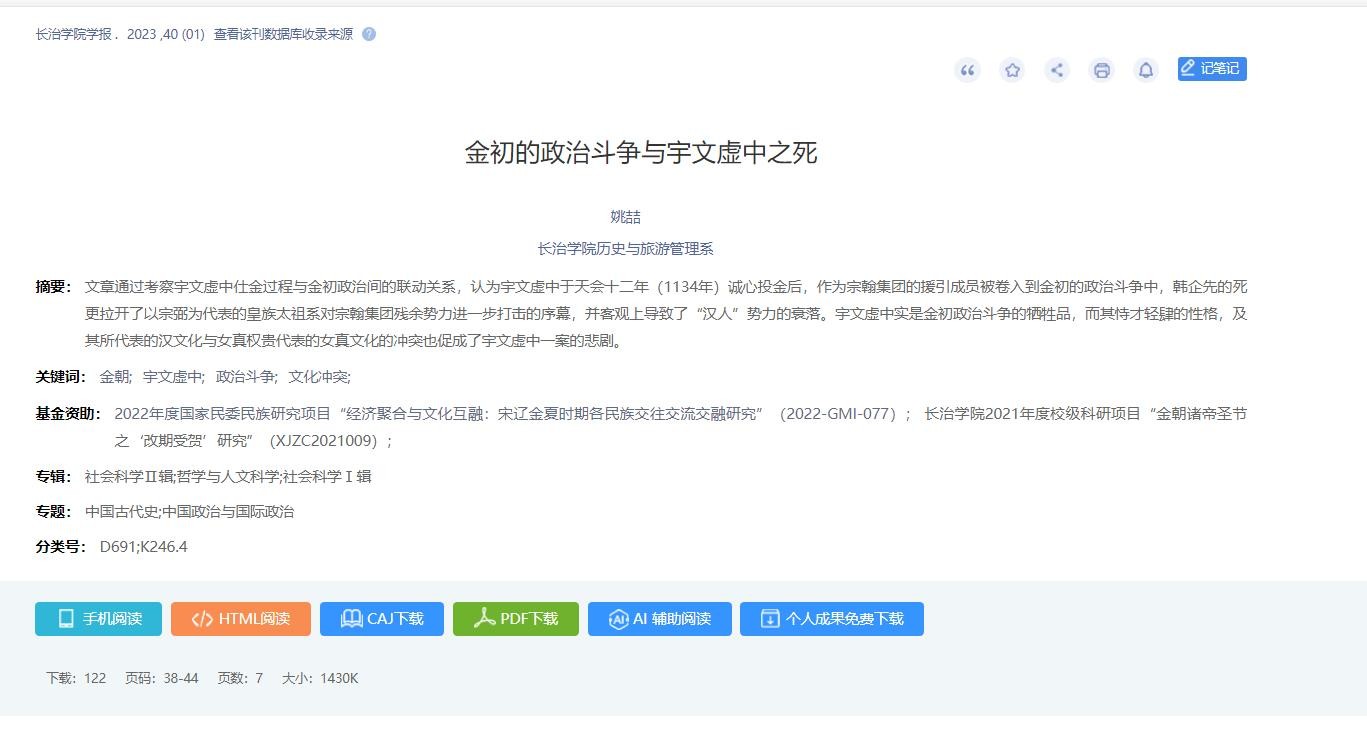 《金初的政治斗争与宇文虚中之死》——长治学院学报 . 2023 ,40 (01)