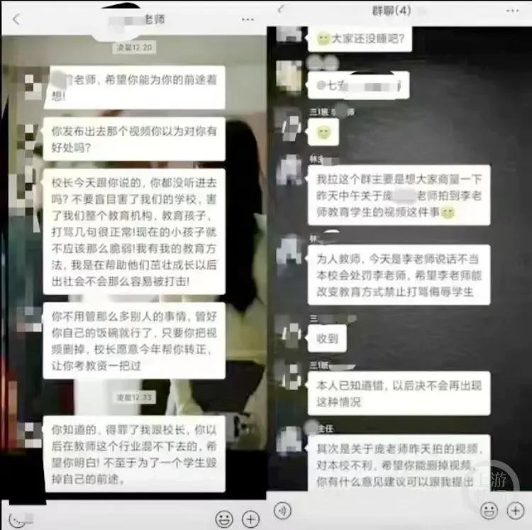 2024年2月29日,湖南湘潭市栗山镇金泉学校的一名老师因被指责辱骂学生而引发了广泛关注和热议。相关截图中,一些人对该老师表示担忧,并称其发布的视频是否有利于自己的前途。还有人称校长已经与该老师进行过谈话,希望她能删除视频以保护自己。此外,还有群聊截图显示,有一位林姓老师将庞姓老师拍摄李老师辱骂学生的视频事情发到群里商量,表示学校会对李老师进行处罚