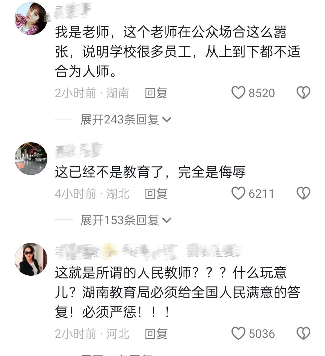记者后续联系上湘潭市教育局,他们表示非常重视此事,并已经介入调查。教育部门将跟进调查了解情况,如果网上所传的情况属实,教育局将保护该老师不受处理,并欢迎社会各界监督教师的行为。