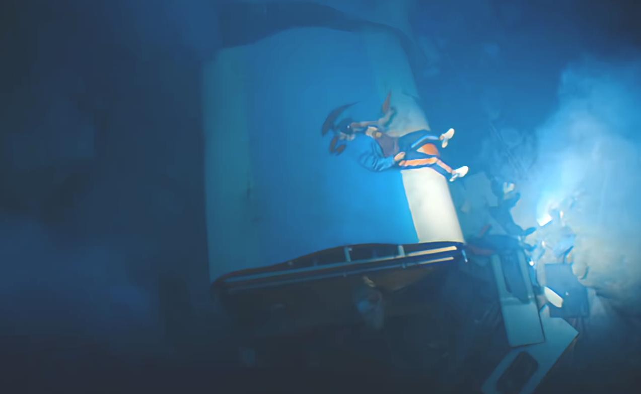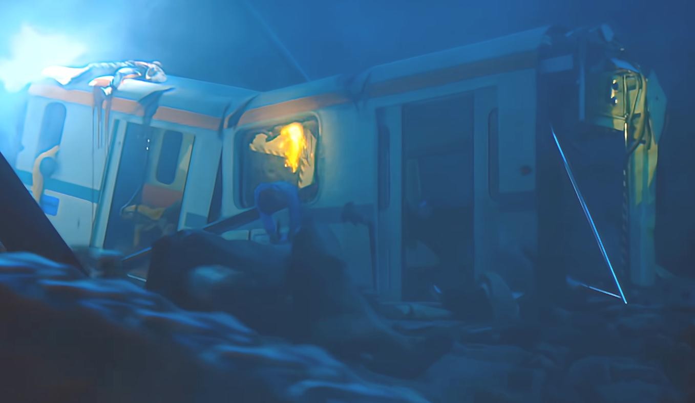 由于车厢的人群过于集中,再加上地铁经历了撞击,最终还是掉到了巨坑下面。