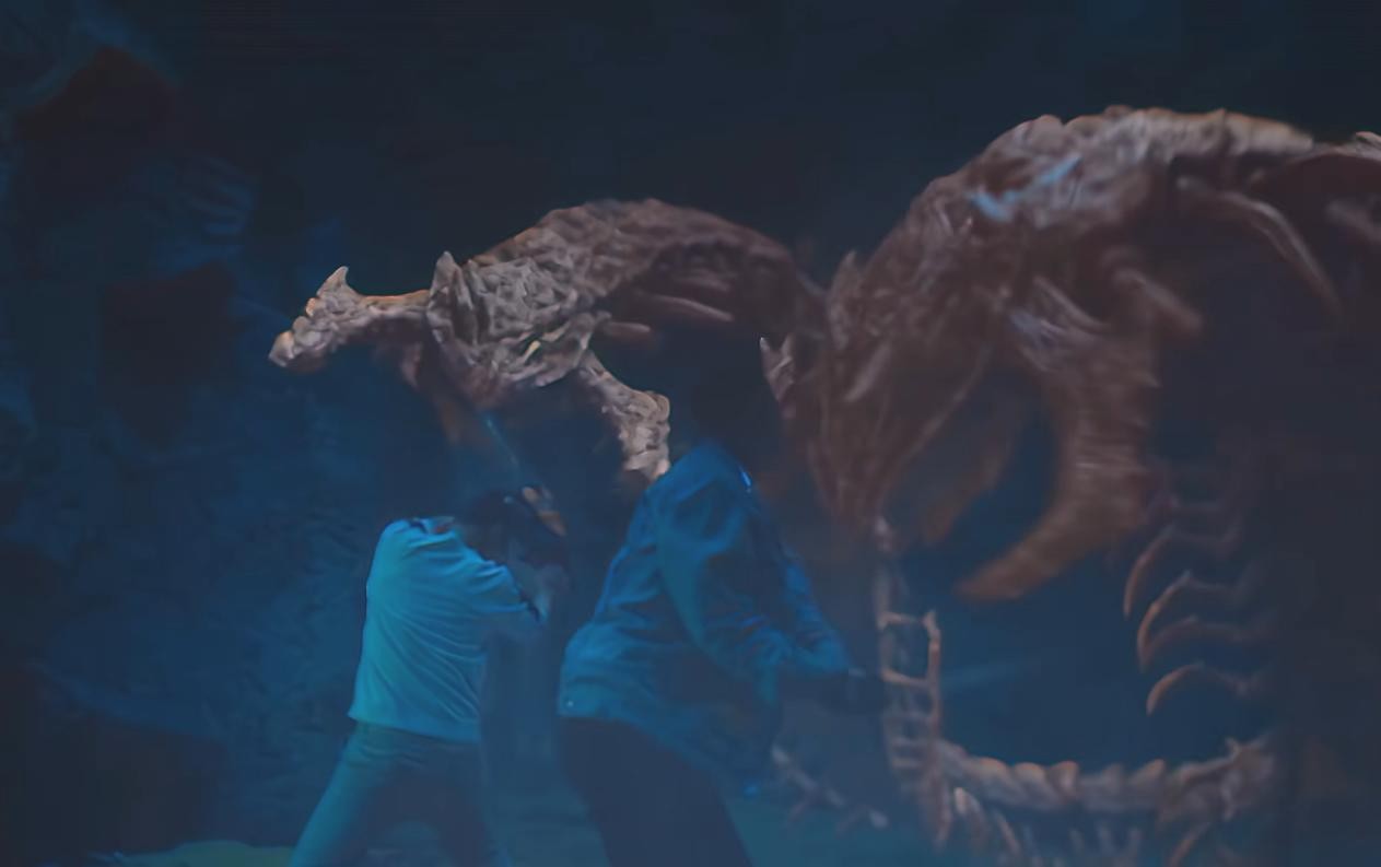 列车掉入巨坑后,缓缓醒来的人们很快又迎来了一大波蜈蚣的袭击。
