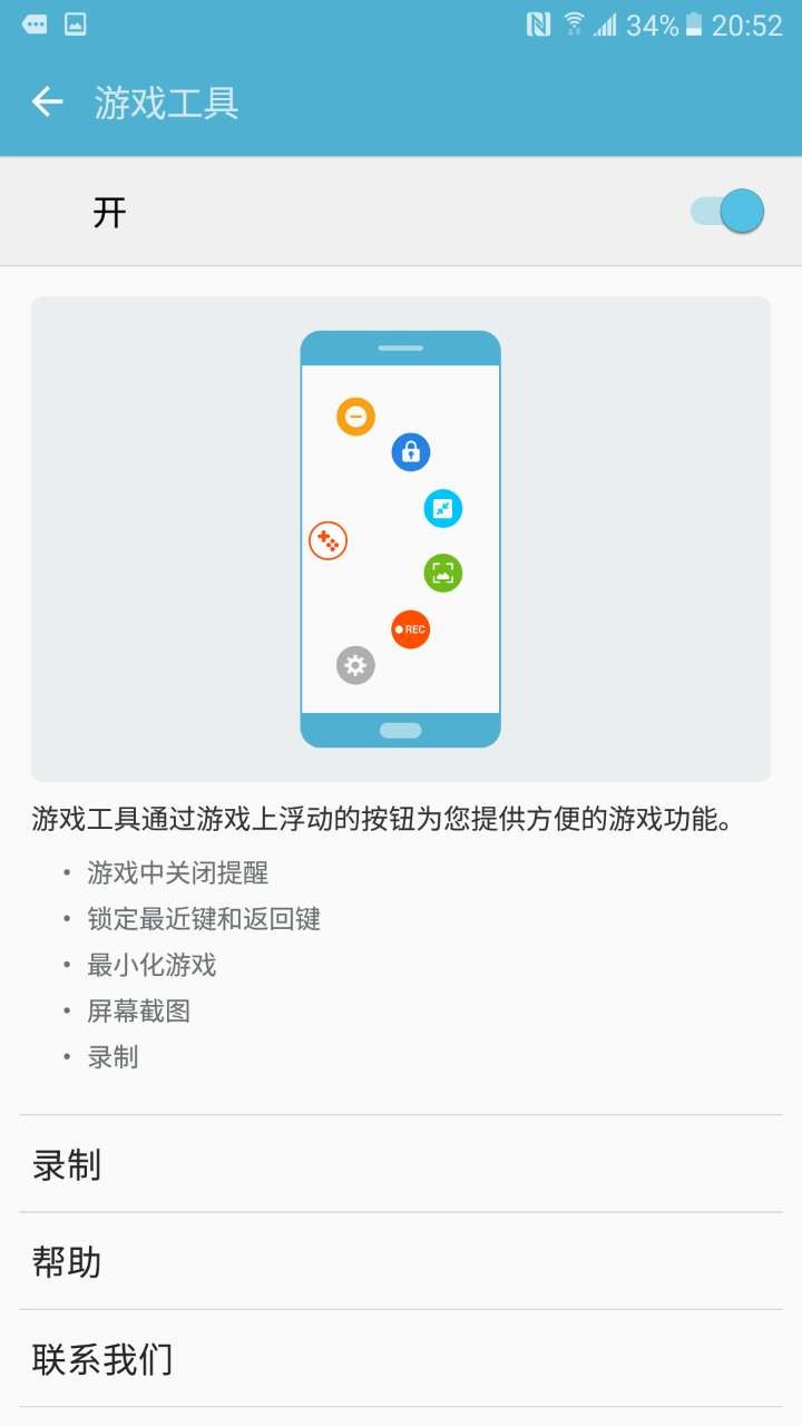 除了音质方面之外,三星Galaxy C7对于游戏用户同样加入了一项有趣的功能,游戏工具和游戏中心,启用该功能后,可以锁定底部按键和关闭通知提醒,工具会隐藏在屏幕一角,可实时通过工具对界面进行操作。