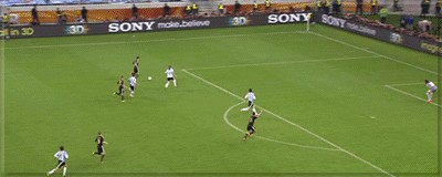 7月3日,开普敦绿点球场,南非世界杯四分之一决赛一场焦点之战拉开战幕。未曾想开局比赛就进入高潮:第3分钟,德国队前场组织进攻,施魏因斯泰格右路反击大范围转移,波多尔斯基左翼拿球过人被奥塔门迪绊倒,裁判判罚任意球。施魏因斯泰格左侧开出任意球,托马斯-穆勒抢在奥塔门迪前面,在前点距门7米处头球一蹭,门将罗梅罗判断失误,球碰他右小腿弹进大门中路,1比0。这是小将穆勒7场国家队的第4球,本届世界杯4次打正门框范围全部得分。德国队取得梦幻开局。
