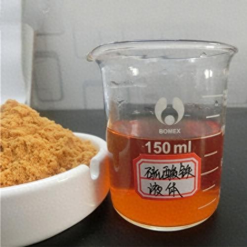 将聚合硫酸铁稀释配制成溶液后,如果静置时间过长,由于聚铁的酸性下降,pH值升高,Fe3+在浓度为1%左右且pH>3时极易生成Fe(OH)3难溶性黄色沉淀物。